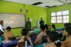 Satgas Pamtas Yonarmed 12 Kostrad Tanamkan Wawasan Kebangsaan di SMK Kusuma Atambua