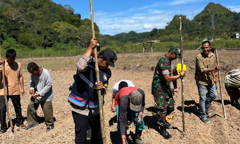 MII – Baturaja- Personel Bhabinkamtibmas Polsek Pengandonan Polres Oku menghadiri kegiatan penanaman jagung binaan desa Tanjung Pura program ketahanan pangan Kec. Pengandonan Kab. OKU yang berlangsung di Desa Tanjung Pura Kec. Muara Jaya Kab. Oku. Senin (13/0/2025).