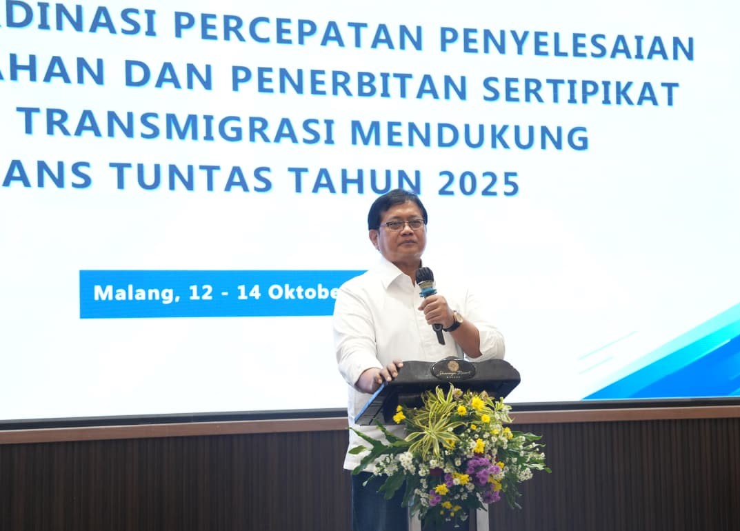 Ungkapan demikian disampaikan Wakil Menteri Transmigrasi Viva Yoga Mauladi saat memberi pengarahan dalam ‘Rapat Koordinasi Percepatan Penyelesaian Permasalahan dan Penerbitan Sertipikat Tanah Transmigrasi Mendukung Trans Tuntas Tahun 2025’, Kota Malang, Jawa Timur, 13/10/2025.