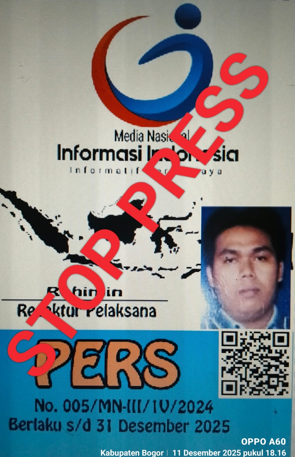 MII – Jakarta – Dengan ini kami selaku Pimpinan Redaksi dan Staff Redaksi mediainformasiindonesia.com. Bahwa Kami Telah Memberhentikan wartawan kami atas nama ROHIMIN Per Tanggal 12 Desember 2025 yang bersangkutan adalh Bukan Anggota Jurnalis / Wartawan / Redaktur Pelaksana dari mediainformasiindonesia.com. dengan pertimbangan terkait dengan kinerja nya. dan sesuai dengan Maklumat yang berlaku dari mediainfomasiindonesia.com seperti dibawah ini.