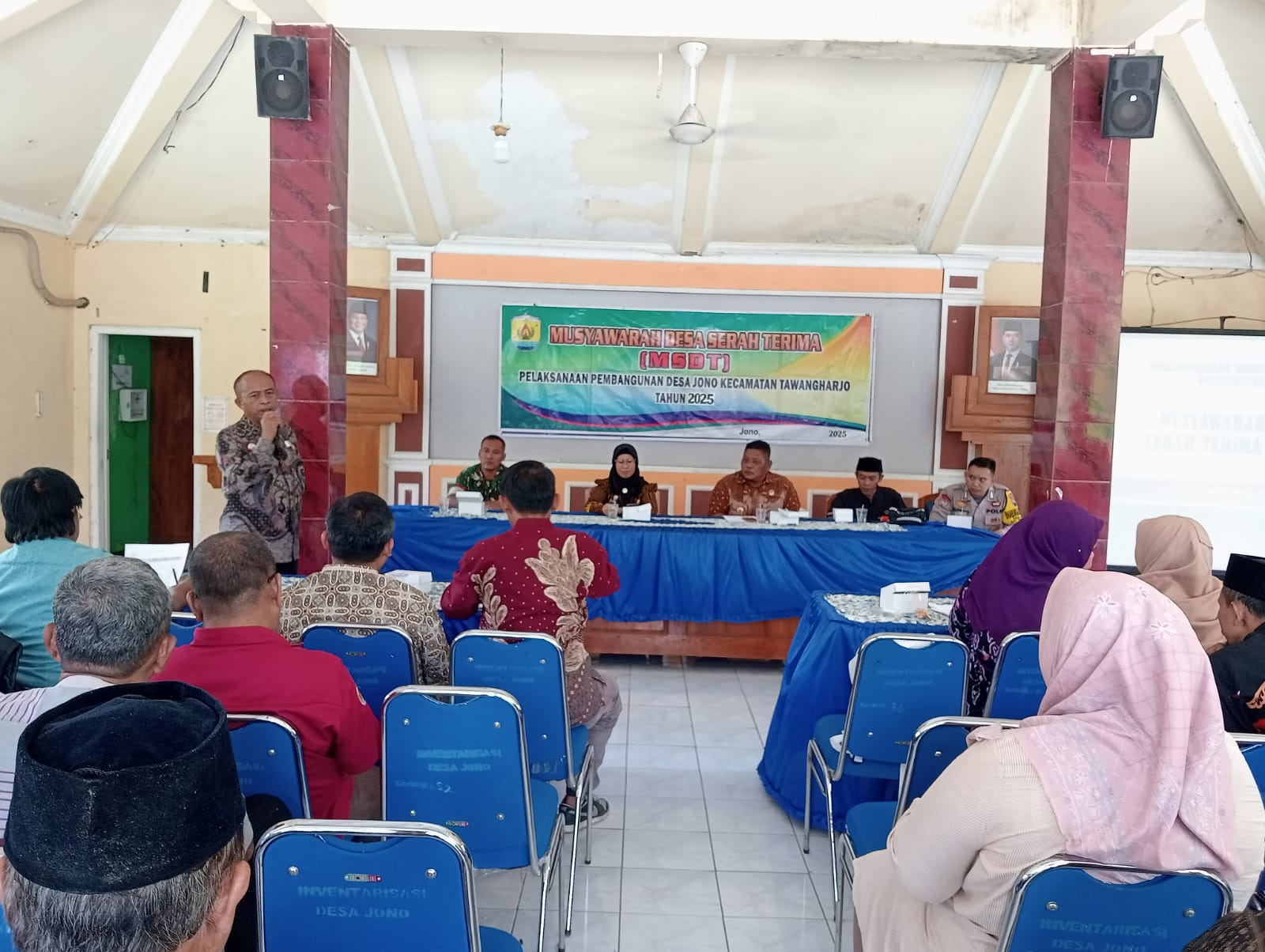 MII – Grobogan – Bhabinkamtibmas Polsek Tawangharjo menghadiri kegiatan Musyawarah Desa Serah Terima ( MDST ) Pelaksanaan Pembangunan Tahun 2025 dan Dana Lainnya Tahun Anggaran 2025 yang diselenggarakan Pemerintah Desa Jono, Kecamatan Tawangharjo, Kamis (29/1/26).